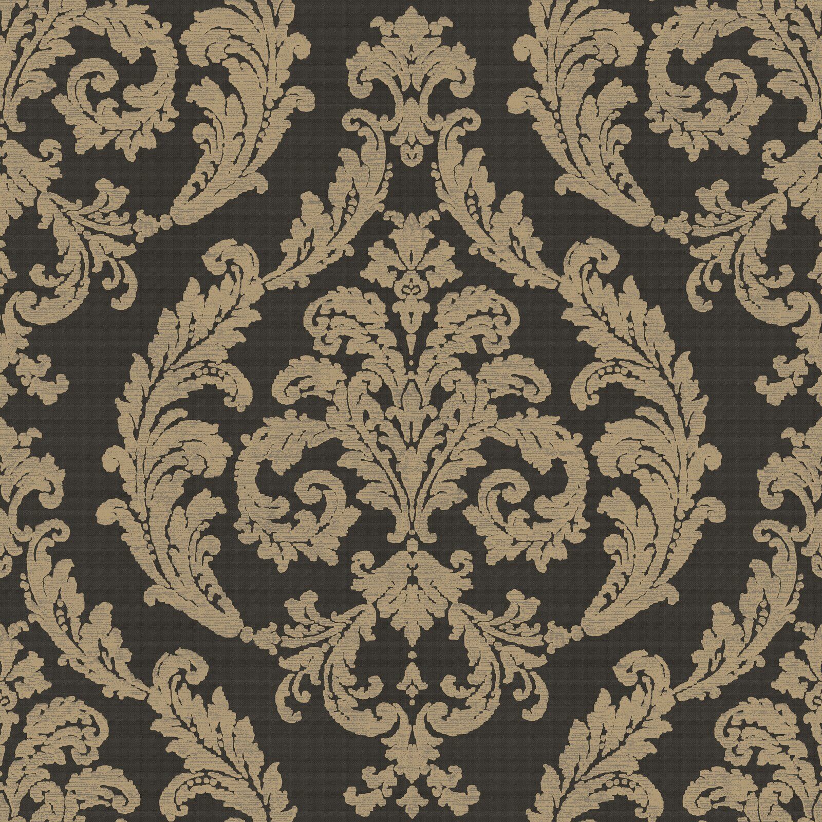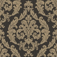 Reminiscent of ancient architecture, an ornamental damask is luxurious and inviting. With swirling acanthus leaves arranged in a classic damask formation and a rich silk-like texture featured throughout, this design is sure to wow. The Rich Black colourway features a deep brown-black base with damask florals in a metallic blonde-gold shade.