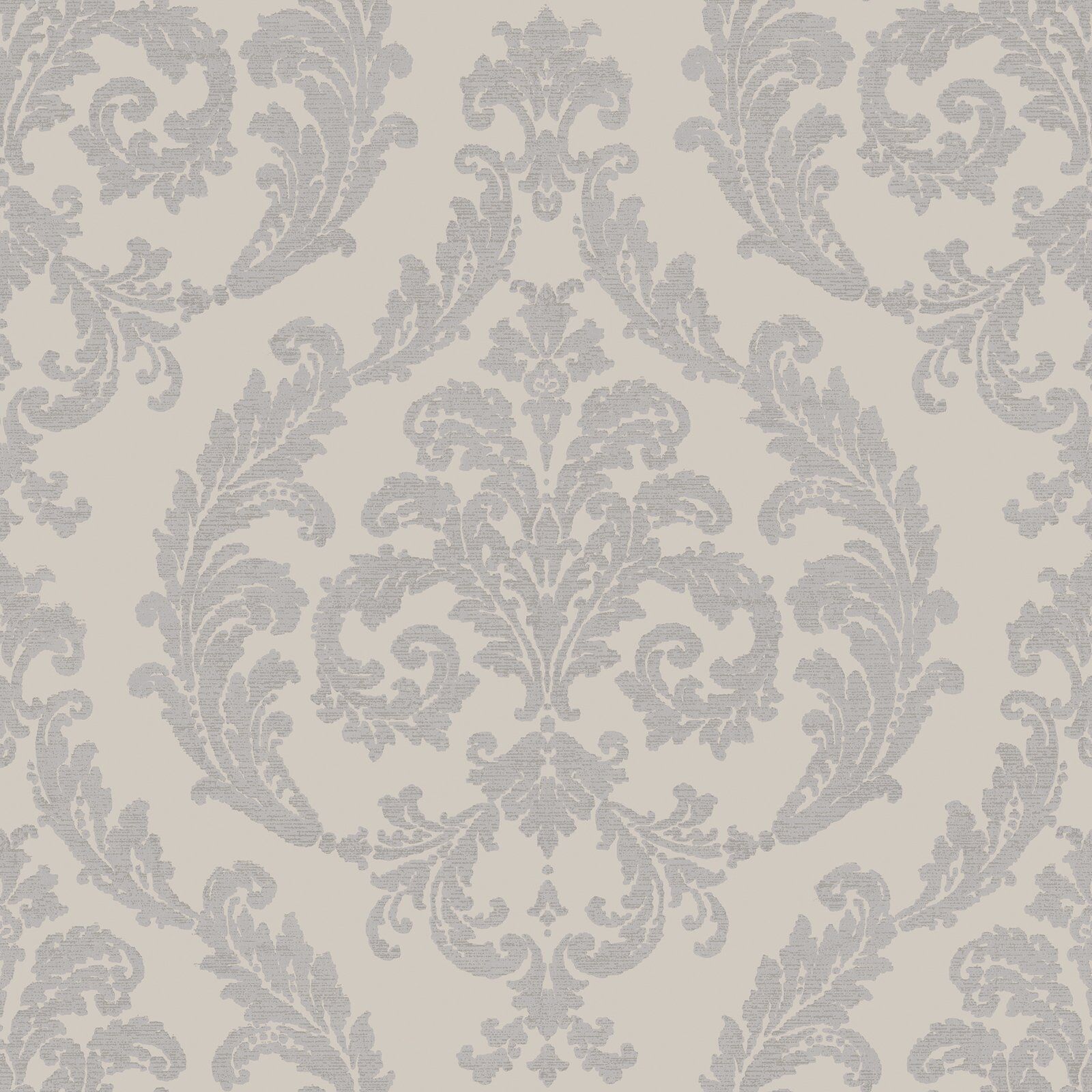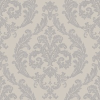 Reminiscent of ancient architecture, an ornamental damask is luxurious and inviting. With swirling acanthus leaves arranged in a classic damask formation and a rich silk-like texture featured throughout, this design is sure to wow. The Silver colourway features a deep neutral base with damask florals in a bold metallic silver shade.