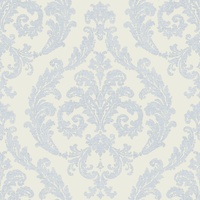 Reminiscent of ancient architecture, an ornamental damask is luxurious and inviting. With swirling acanthus leaves arranged in a classic damask formation and a rich silk-like texture featured throughout, this design is sure to wow. The Soft Cream colourway features a soft creamy base with damask florals in a metallic silver shade.