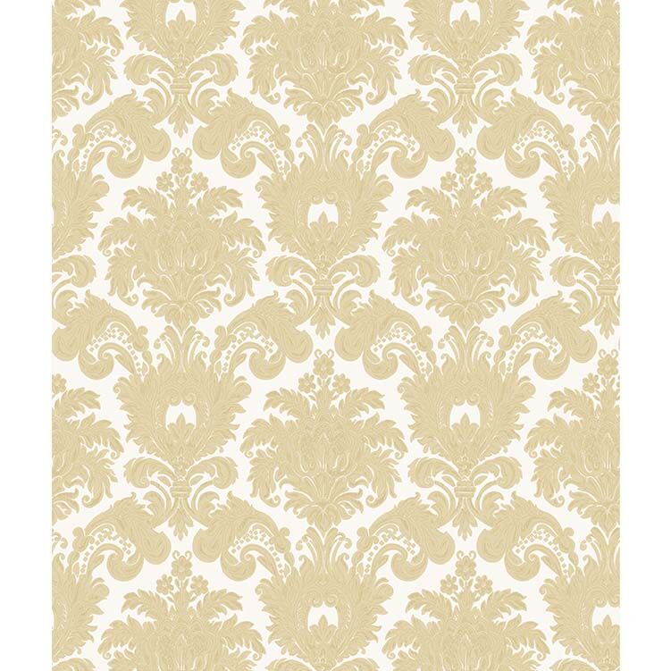 Decorate your walls with an ornate damask design. With soft pearlescent details and a rich traditional design, the Villa pattern is the perfect vintage design. Constructed on a vinyl material, this design has a rich textural feel and a sheen that shifts in the light. The perfect feature wall in a traditional home or use as a classic twist in a modern space. The Soft Gold colourway features an all over creamy white shade with damask decorations in a contrasting soft gold texture.