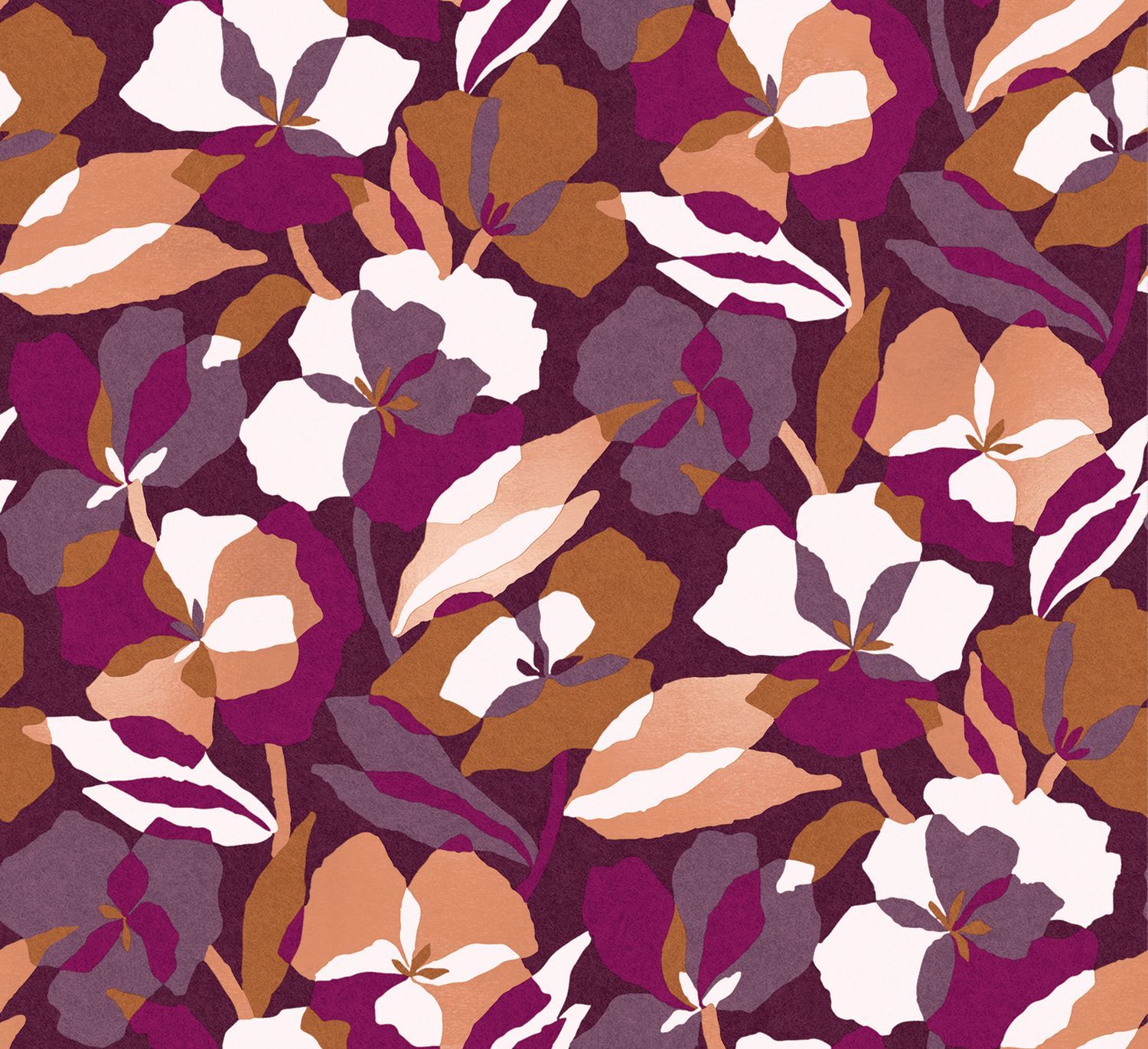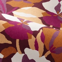 Often blooming in the depths of winter, its majestic flowers are held by long stems, the amaryllis is the epitome of elegance. Stylised and printed as planes of colour on a base with the look of blotting paper, the AMARYLLIS take centre stage in this contemporary composition, blending deep shades and overlapping flowers. A golden or coppery metallic films adds a touch of sophistication.