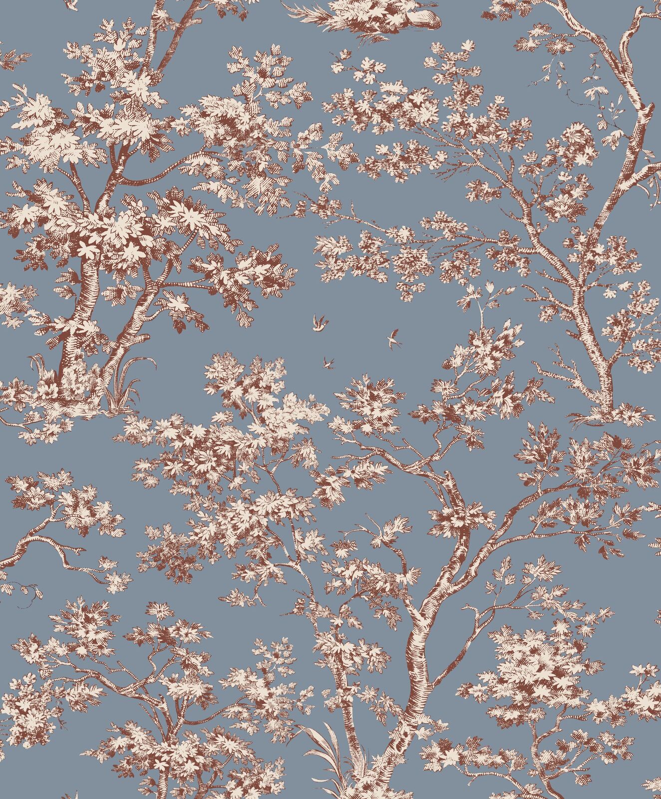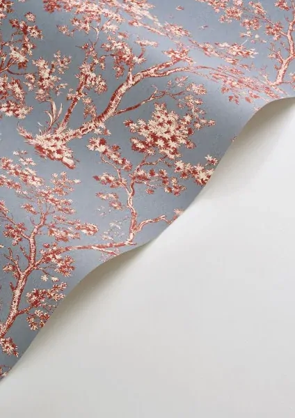 Inspired by the forest of Fontainebleau, the Arbres pattern brings a breath of fresh air to your walls. We love these venerable plant silhouettes so much that we can imagine ourselves as children climbing their branches! The Storm Blue colourway features a mid blue base with white and red foliage elements.