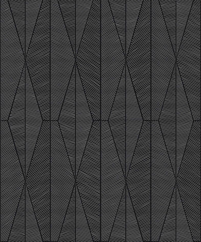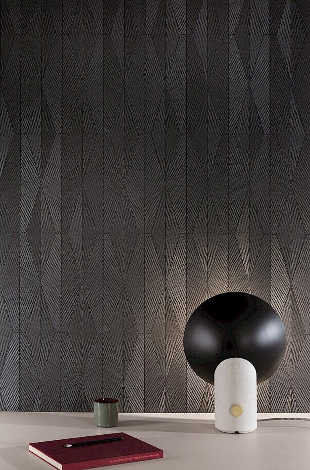 The Ari pattern uses light to enrich a space. The stripes are in exactly the same colour and material, but just by placing them in two different directions, you get a different colour. This is highlighted by the slightly darker colour of the background. Ari is a very simple design, but with so much depth it's a real favourite. The Dark colourway features a charcoal/black base with dark silver line formations.