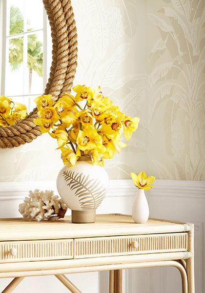 Discover an assortment of tropical wallcoverings featuring a botanical garden of foliage. The Palm Grove collection offers designs that range in scale, style, and techniques, including textured paper weaves, performance vinyl, and screen printing.