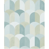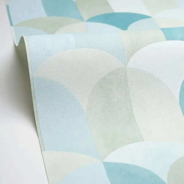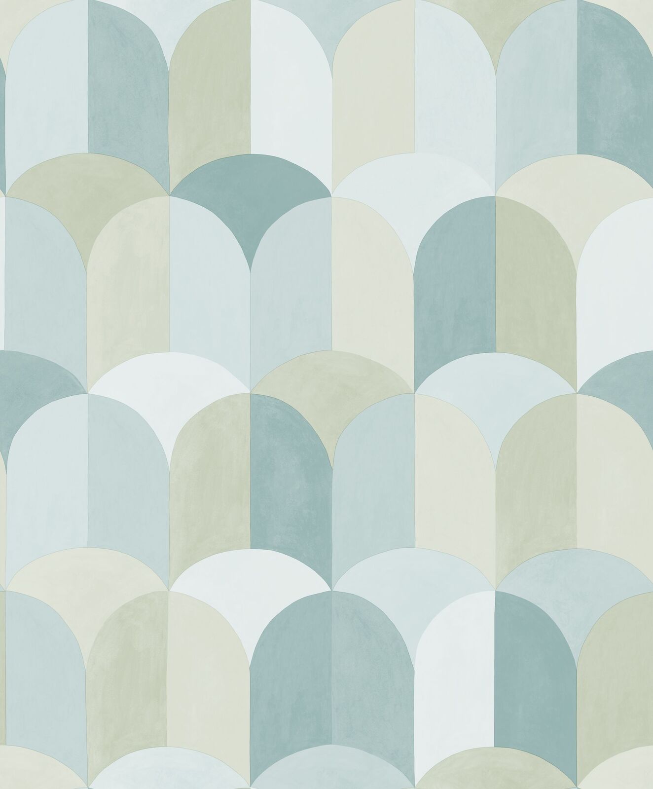It looks like the South... This geometric pattern designed by our stylist Cyrielle is inspired by the kitchen tiles of the South of France where pissaladière and pistou soup are simmering. The Ocean Blue colourway features geometric arch and curve forms in soft shades of blue and grey.