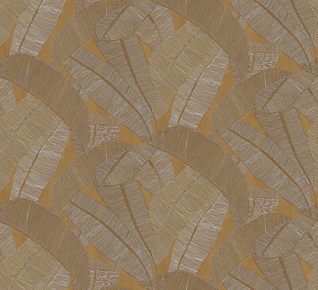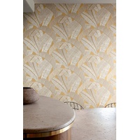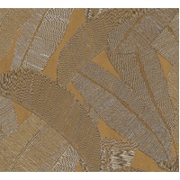 With a faux-string look, these large banana leaves offer a rich textural look, reminiscent of a silk or woven fabric. In soft monochromatic colours with metallic highlighting, the Banyan design is sure to wow. The Honey colourway features honey-brown and gold base with banana leaves in brown and pearl string forms.