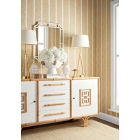 Barrier Weave is a timeless, textured natural wallcovering featuring a petite leaf motif in a vertical stripe, situated on a diamond box paperweave. The Wheat colourway features a rich straw coloured base with crisp white stripe details.