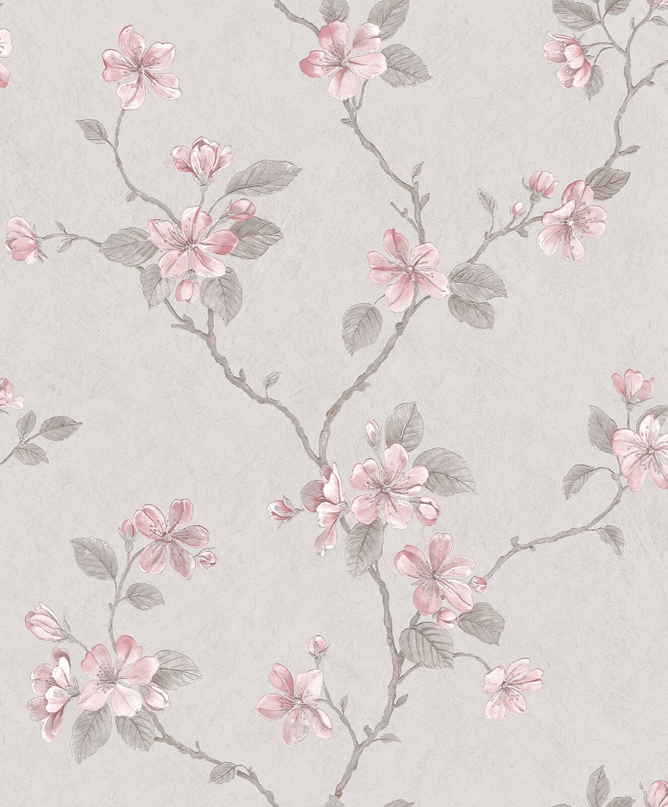 Simple blossoming florals lay delicately among branching foliage. With a rich paint-like embossing and limewash effect background, the Blossom design offers luxurious depth. The Pink on Grey colourway features a limewashed grey base with blososms in a soft pink and foliage in a deep grey. This design has a subtle sheen.