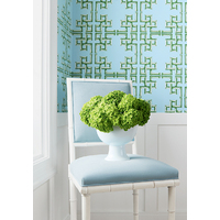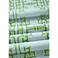 A graphic yet timeless wallpaper, Boca Bamboo offers a fresh interpretation of a modern lattice formed with intricately placed bamboo. The Green & Blue colourway features a spa blue base with vibrant green bamboo fretwork squares.