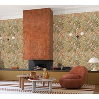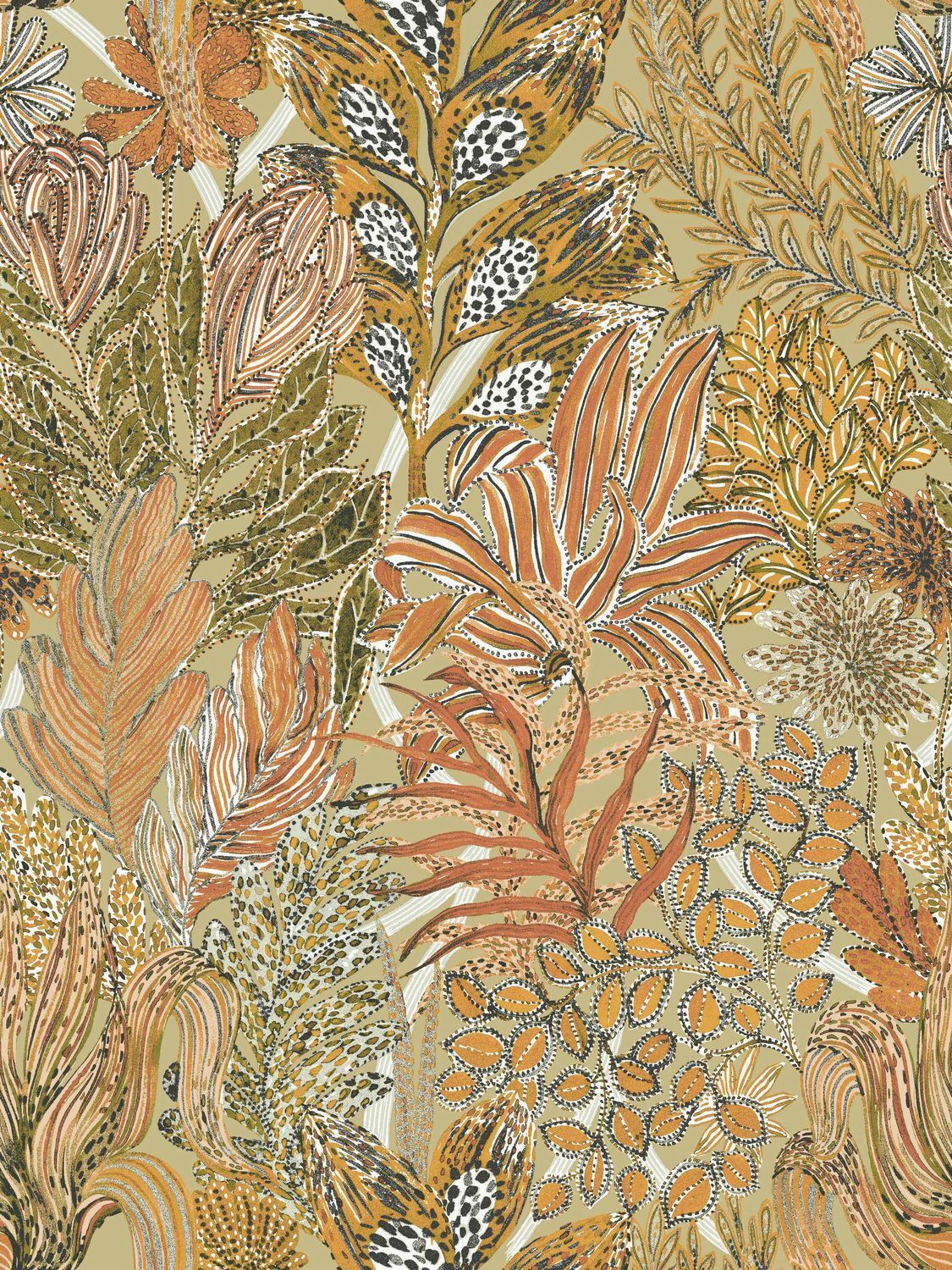 Like an invitation to travel, BORROMEE invites us to explore the depths of its graphics and colors. BORROMEE is an explosion of plants, a life-sized secret garden, a magical atmosphere where nature takes up all the space.The Lichen / Sienna colourway features a pale green base with foliage details in shades of sienna, green, beige, and grey.