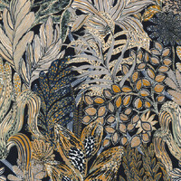 The Borromee design boasts lush and exotic foliage displayed in an abstract decorative style. With lines and dots forming the intricate elements of each plant and leaf, the details in Borromee instantly draw your eyes in. In five colour variations, there's something for everyone. The Marine colourway features an array of green, orange and navy shades over a black background.