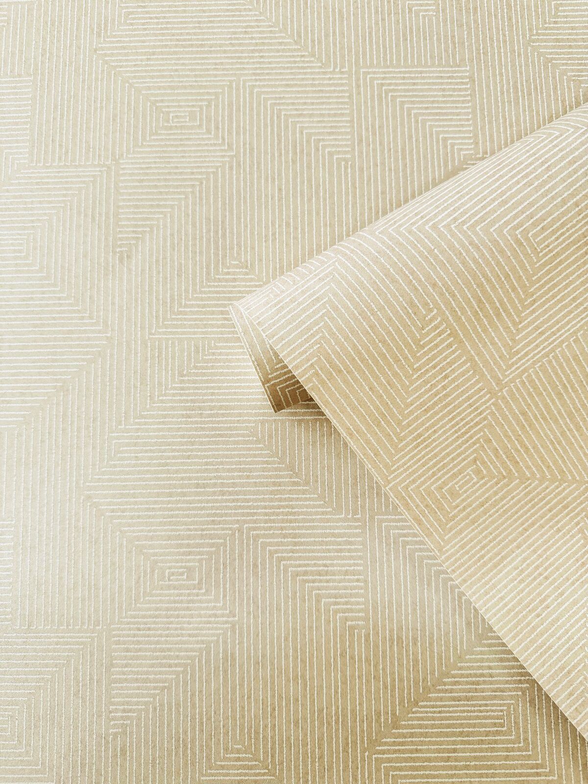 Fine, slightly raised pinstripes are arranged in angular patterns to create a stunning Egyptian inspired geometric design. Subtle metallic highlights and an ultra-thin design makes this truly eye-catching. The Neutral colourway features a soft neutral base with creamy white pinstripe details.