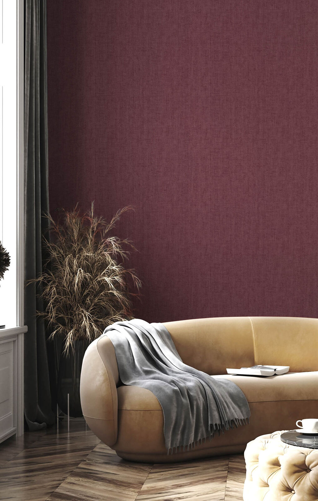 The Colore fine textured crosshatching is reminiscent of a fabric texture. Simple texture and rich tonal shades make for an eye-catching wall feature. The Wine Red colourway features a deep red fabric look.