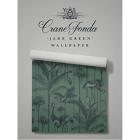 Our beloved Crane Fonda wallpaper has had a makeover, reimagined in a beautifully larger scale. Created honouring traditional techniques, our team of skilled craftsmen celebrate heritage manufacturing, with intricately engraved rollers and hand-mixed paints to produce a collection that delivers great British design with our signature divine and savage twist. Featuring the elegantly fabulous Grey Crowned Crane amongst lush palm trees, this latest creation will bring a breezy atmosphere to your interior.