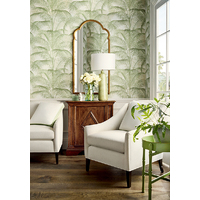 Delray is larger than life with a naturalistic interpretation of a soothing palm tree blowing in the wind with its wispy, balmy leaves. The Sage colourway features a soft white base with delicate palm fronds in dulled shades of green.