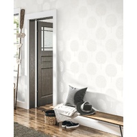 The Demi design featurs a simple repeating tree motif with delicate leaves and strong circular forms. The Rain colourway features a simple grey base with trees in a matte white shade.