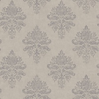 Reminiscent of ancient architecture, an ornamental damask is luxurious and inviting. With curled acanthus leaves in a simple diamond motif formation and a rich silk-like texture featured throughout, this design is sure to wow. The Grey colourway features a dull grey base with motifs in a metallic silver shade.