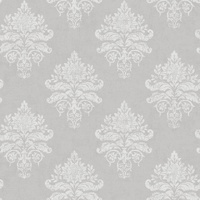 Reminiscent of ancient architecture, an ornamental damask is luxurious and inviting. With curled acanthus leaves in a simple diamond motif formation and a rich silk-like texture featured throughout, this design is sure to wow. The Light Grey colourway features a soft grey base with motifs in a bright metallic silver shade.