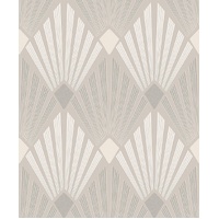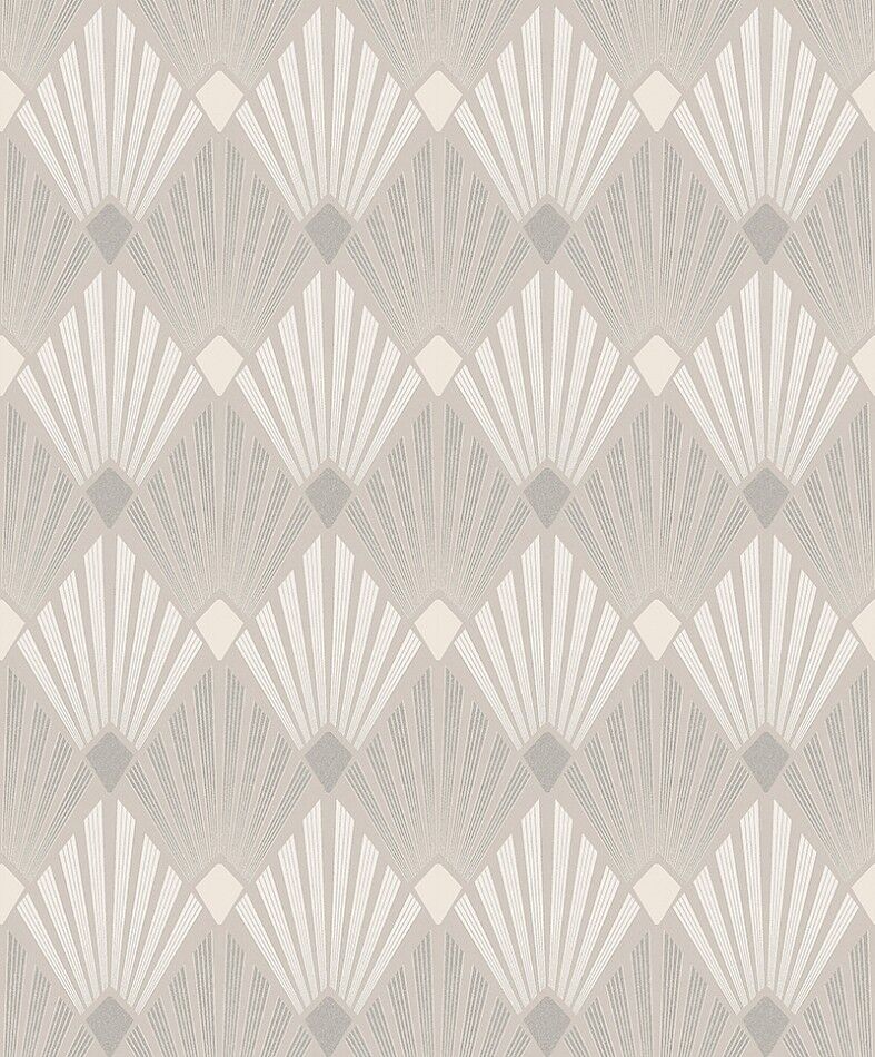 The Diego pattern instantly transports you to an intimate Art Deco sitting room. Rich geometric fan shapes form an all-over diamond effect, complemented by gorgeous two-tone colourings. The Oyster colourway features a neutral base with dark metallic gold and white fan formations.