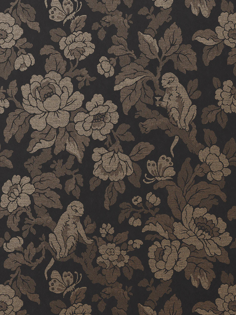 Inspired by the “Drunken Monkey” hypothesis that humans inherited their love of alcohol from our cheeky primate ancestors. Sipping on nature’s nectar, this decorative floral print wallpaper brings potent pattern to any interior.
