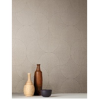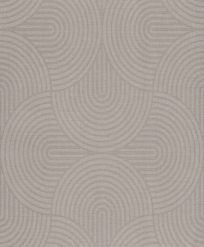 Soft overlapping ovals with delicate curving stripes. With a soft metallic finish and a subtle linen texture effect, this geometric design is sure to wow. The Sand colourway features soft shades of grey and pewter with soft neutral etching effects.