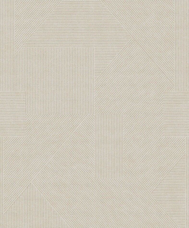 With fine stripes reminiscent of a fabric pinstripe, the Epoxy design takes form as an eye-catching yet subtle geometric pattern. The Parchment colourway features neutral and metallic gold stripes with fine white dots all over.