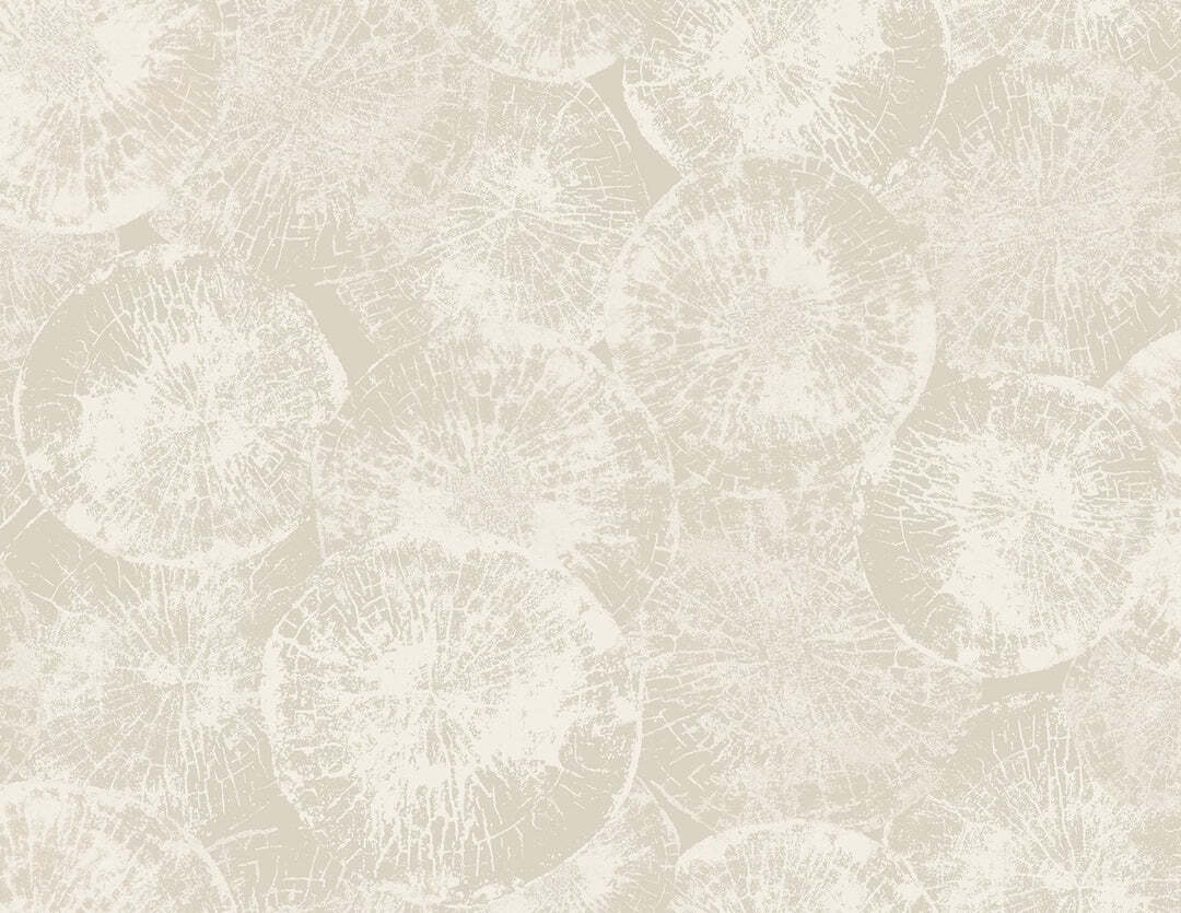 The Eren pattern features overlapping circles reminiscent of a cross section of a tree, with each circle showing intricate veining details. The Dove Grey colourway features a warm grey base with creamy white circular stamps over top.
