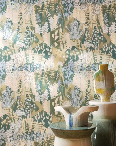 A lively and joyful portrayal of bedding plants dotted with heather and wild flowers. With small strokes, like an Impressionist’s painting, ERICA comes to life under the artist’s brush to celebrate the colours of this wonderful country garden. The rich colours come from the rotogravure printing. Some of the details of this floral scene are lifted by discrete metallic touches, creating an overall feeling of sophistication.