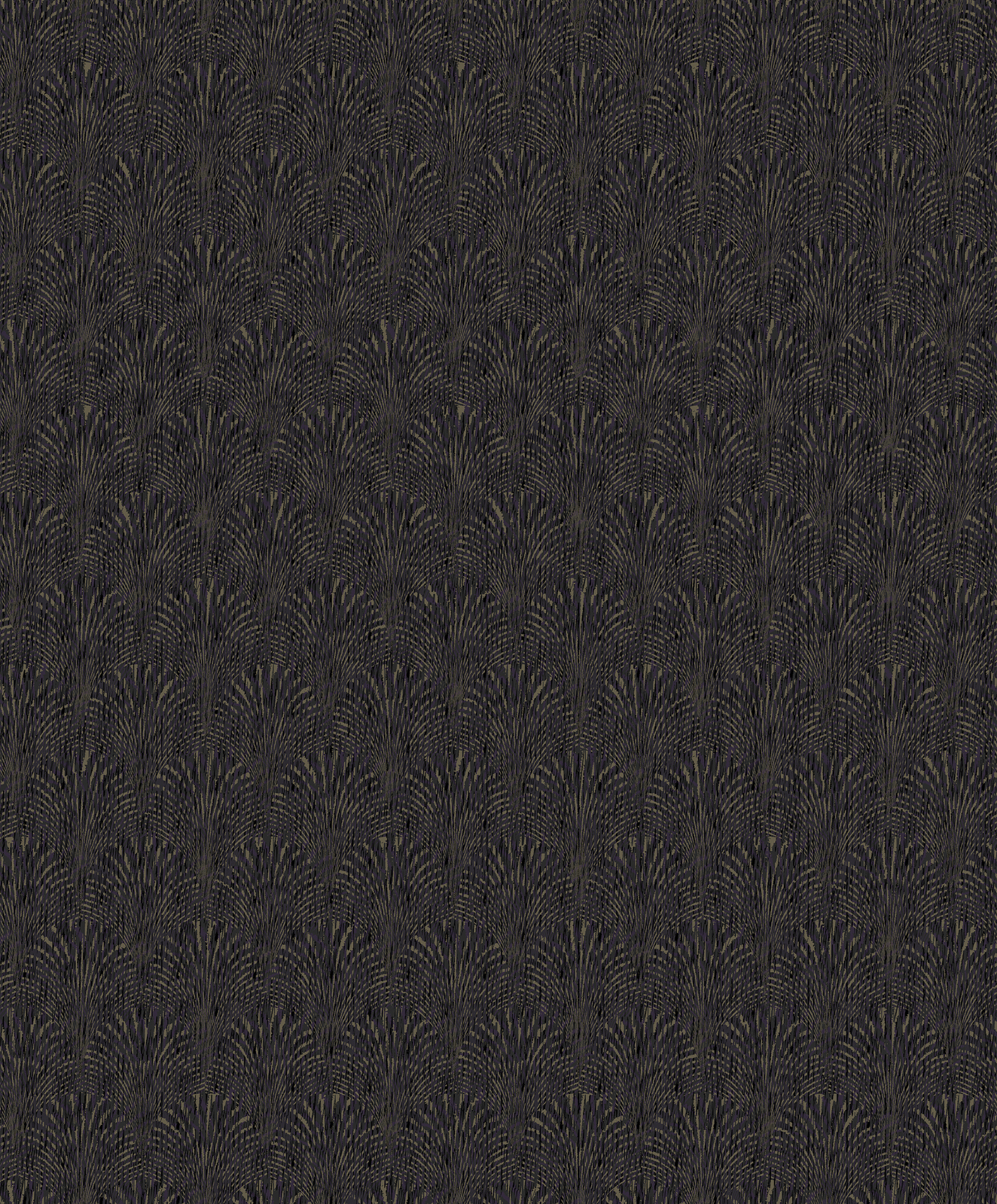 This pearlescent fan design is a fantastic wallpaper that reflects the 1970s fashion for exotic patterns and global cultures. The Lilac/Black colourway features a black and charcoal background with fine purple and gold shapes over top.
