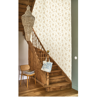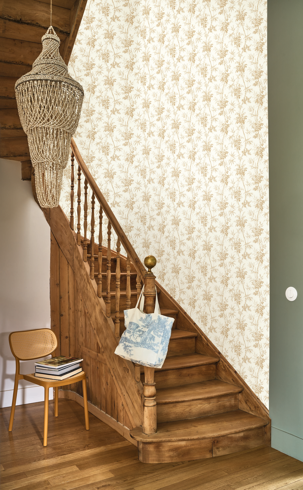 A touch of French charm. With Flânerie, leaves, stems and flowers intertwine with panache to adorn your walls. This botanical armada features bamboo, roses and mysterious grasses, creating a lush yet harmonious effect. The Camel colourway features a creamy white base with warm beige foliage details.