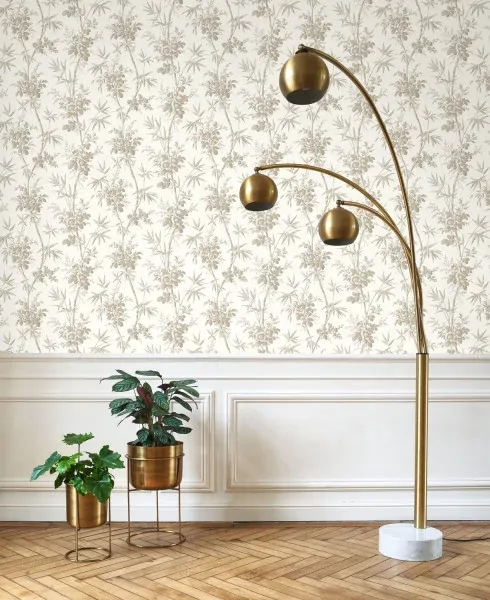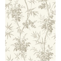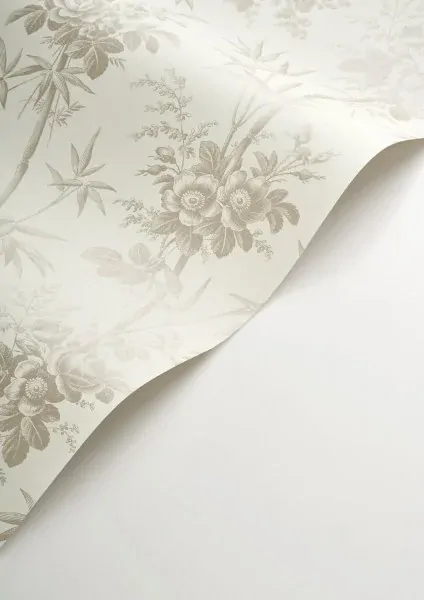 A touch of French charm. With Flânerie, leaves, stems and flowers intertwine with panache to adorn your walls. This botanical armada features bamboo, roses and mysterious grasses, creating a lush yet harmonious effect. The Taupe colourway features a creamy white base with metallic gilver foliage details.