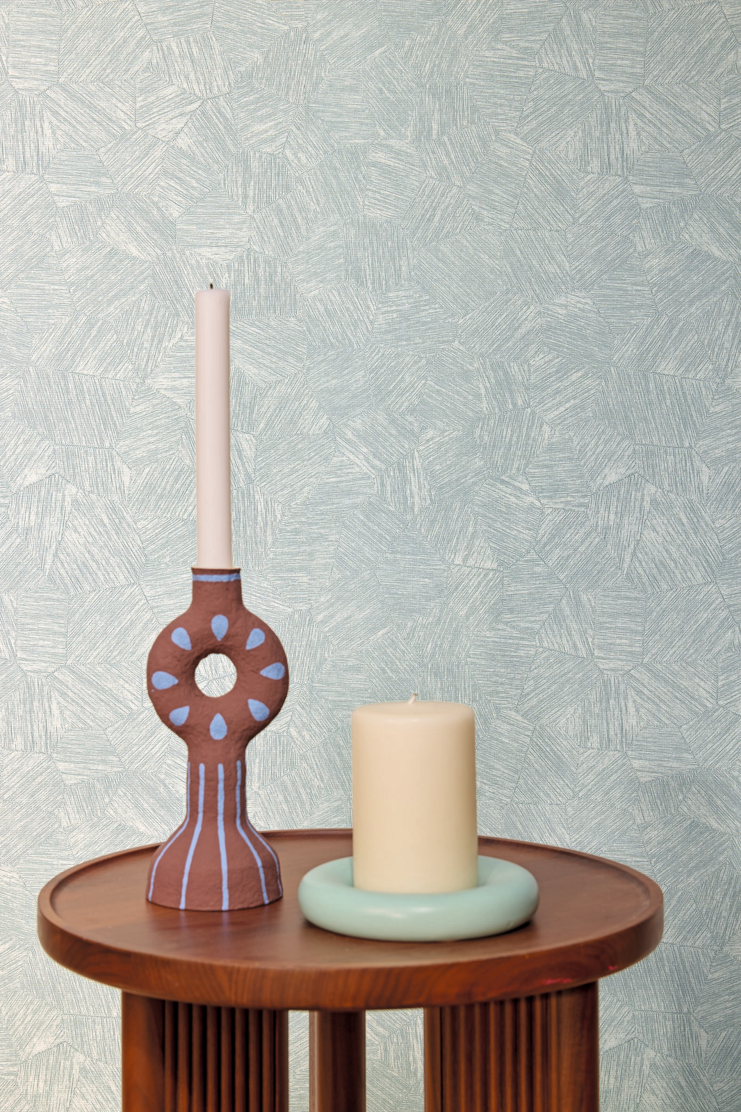 Plain? It looks like it! On closer inspection, this pattern is composed of several hexagonal shapes reminiscent of rope. Available in several colours, including one with a pretty shiny gold effect. The Blue Ash colourway features geo etches in muted blue shades.