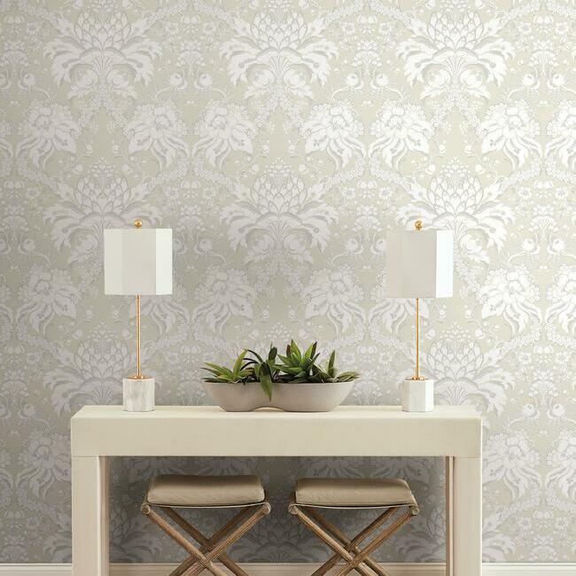 Inspired by a French jacquard, a blooming artichoke laced with touches of burnished metallic, sits at the heart of the pattern French Artichoke Damask’s lush medallions of blossoms, branches, and vines. As the most elegant constant in classic design, damask continues to influence trend and inspire ideals of beauty in modern luxury interiors.