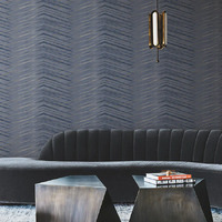 The geometric effect created in the pattern Glistening Chevron is due to the layering of regimented metallic javelin-inspired brushstrokes. The smooth chevron base is complimented by the soft pearl strokes. The Navy  colourway features a deep navy blue base with pearl brushstrokes over top.