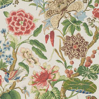 Hill Garden features bold Jacobean style florals among branches and birds, giving the feel of a luscious full garden. The bright colours work together to create a truly beautiful nature inspired wallpaper. The Flax colourway features a neutral background with foliage and flowers in green, beige and pink.