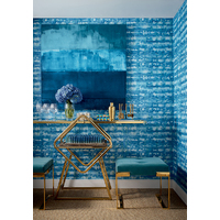 Illusion's soft, painterly design is inspired by a watercolour painting. Subdued, neutral hues can serve as a textured background, while a bold blue adds a punchy vibe. The Blue colourway features a rich cyan and white toned design.