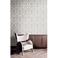 Decorate your walls with an ornate damask, with metallic details and a thread-like texture. Constructed on a vinyl material, the Imperiale design has a rich textural feel. The perfect feature wall in a traditional home or use as a classic twist in a modern space. The Light Silver colourway features an allover metallic grey shade.