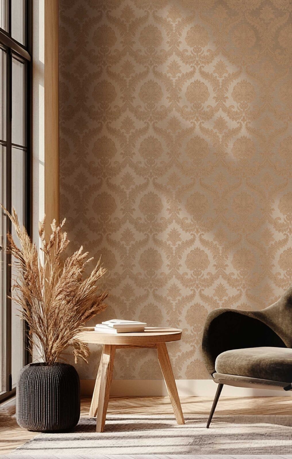 Decorate your walls with an ornate damask, with metallic details and a thread-like texture. Constructed on a vinyl material, the Imperiale design has a rich textural feel. The perfect feature wall in a traditional home or use as a classic twist in a modern space.