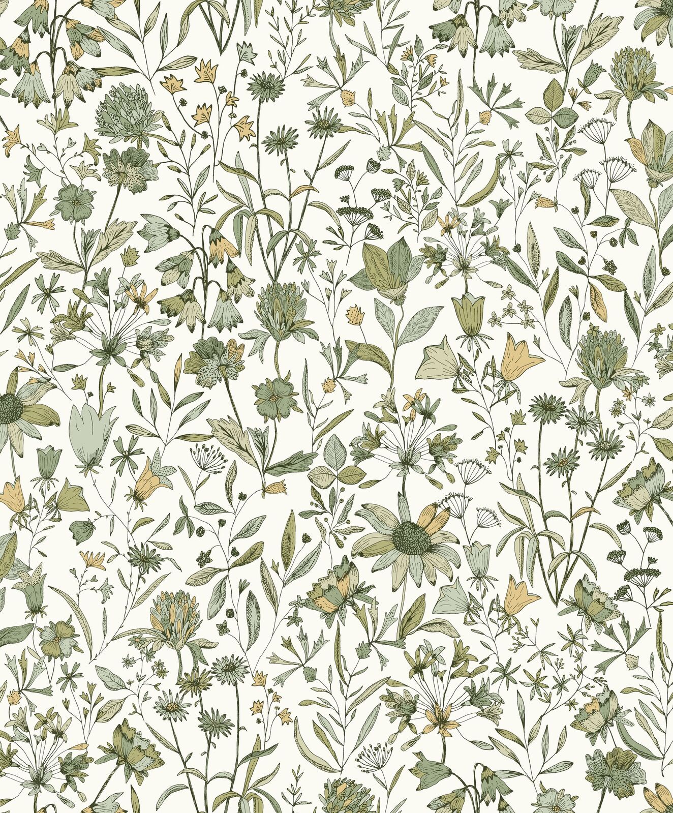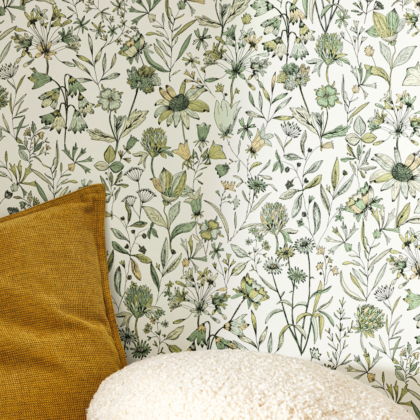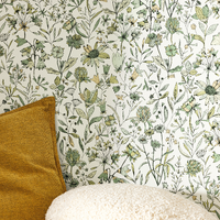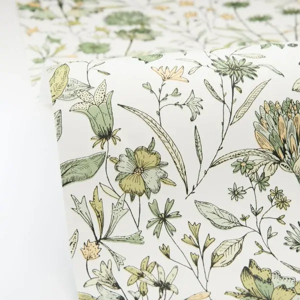 Fancy a French garden? Here is a unique pattern that reminds us of the garden of a famous painter, its multitude of flowers and its pretty colours. It's fresh, it's poetic, it's trendy, it's designed for you! The Greens colourway features a pale white base with florals in shades of green and soft yellow.