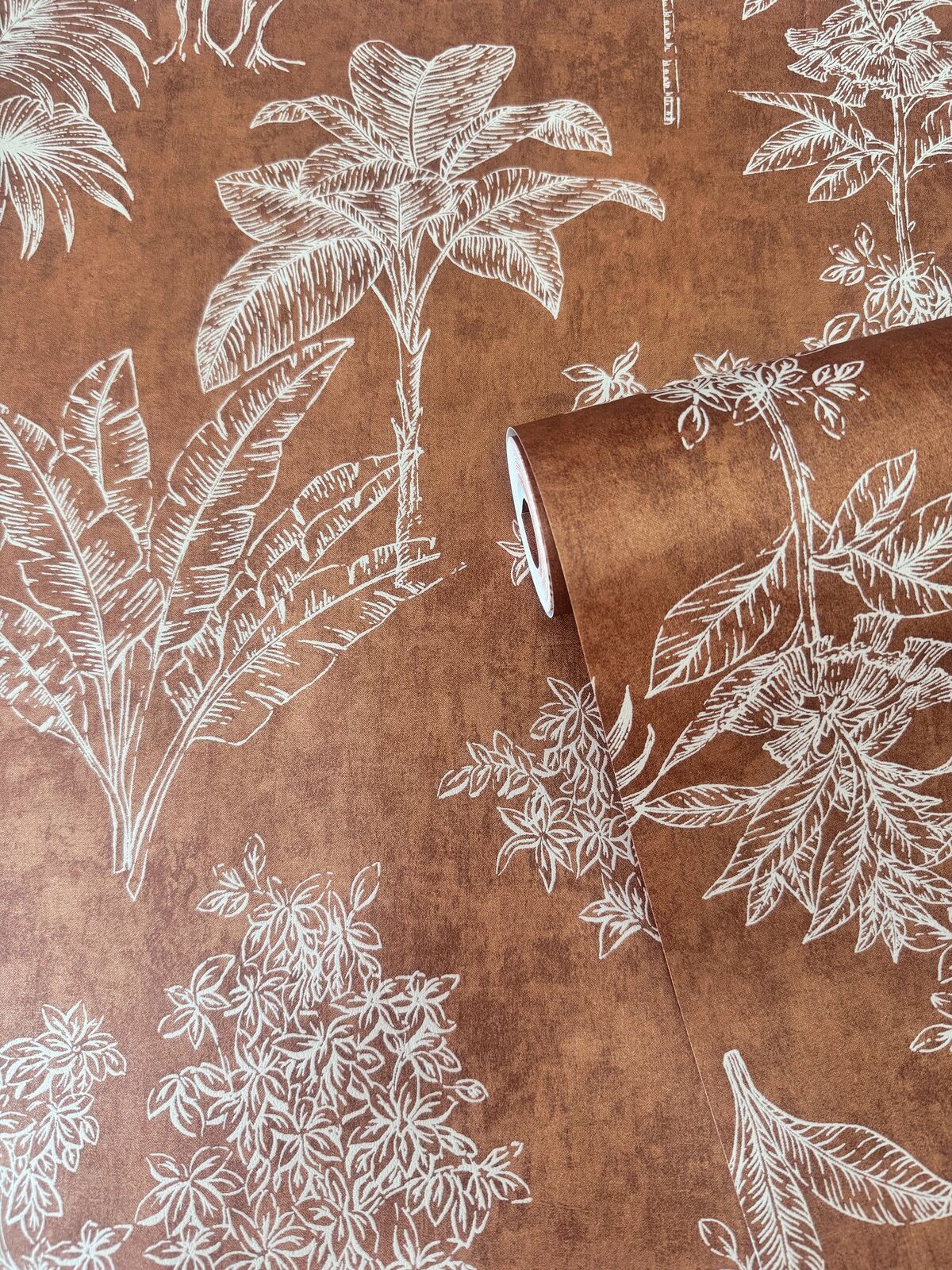 Simple silhouette trees over a washed background, completed by subtle metallic shimmers. The perfect nature inspired design to bring a sense of calm to your home. The Rust colourway features a deep terracotta red base with soft metallic highlights and soft white tree silhouettes.