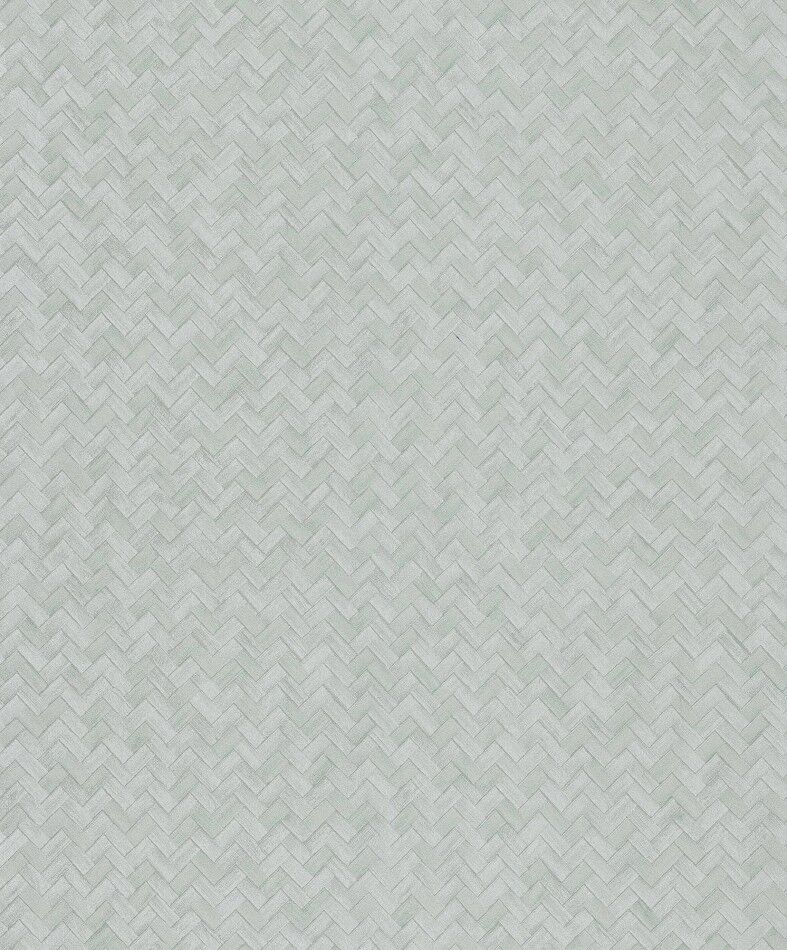 Like a traditional basket weave, thick lines interlock in a chevron pattern. Textural and tonal details make the pattern pop, giving that extra bit of wow. The Jade colourway features a monochromatic pale chetwode green pattern with highlights in metallic soft blue.