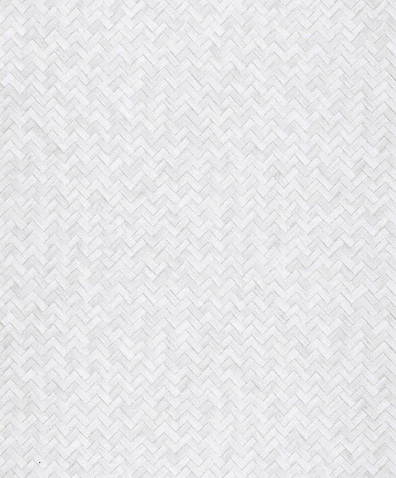 Like a traditional basket weave, thick lines interlock in a chevron pattern. Textural and tonal details make the pattern pop, giving that extra bit of wow. The Silver colourway features a monochromatic white pattern with highlights in grey and pearly silver.
