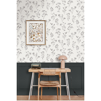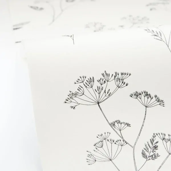 Finesse and elegance are the words invented for this fresh, spring-like « little flowers » pattern, which is perfect for country interiors. You will fall in love with the fine, delicate lines of each plant design, and also with the choice of colours, both in the pencil strokes and on the backgrounds. The Black & White colourway features a soft white base with thin floral motifs in a soft black shade.