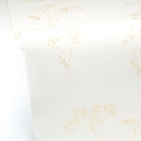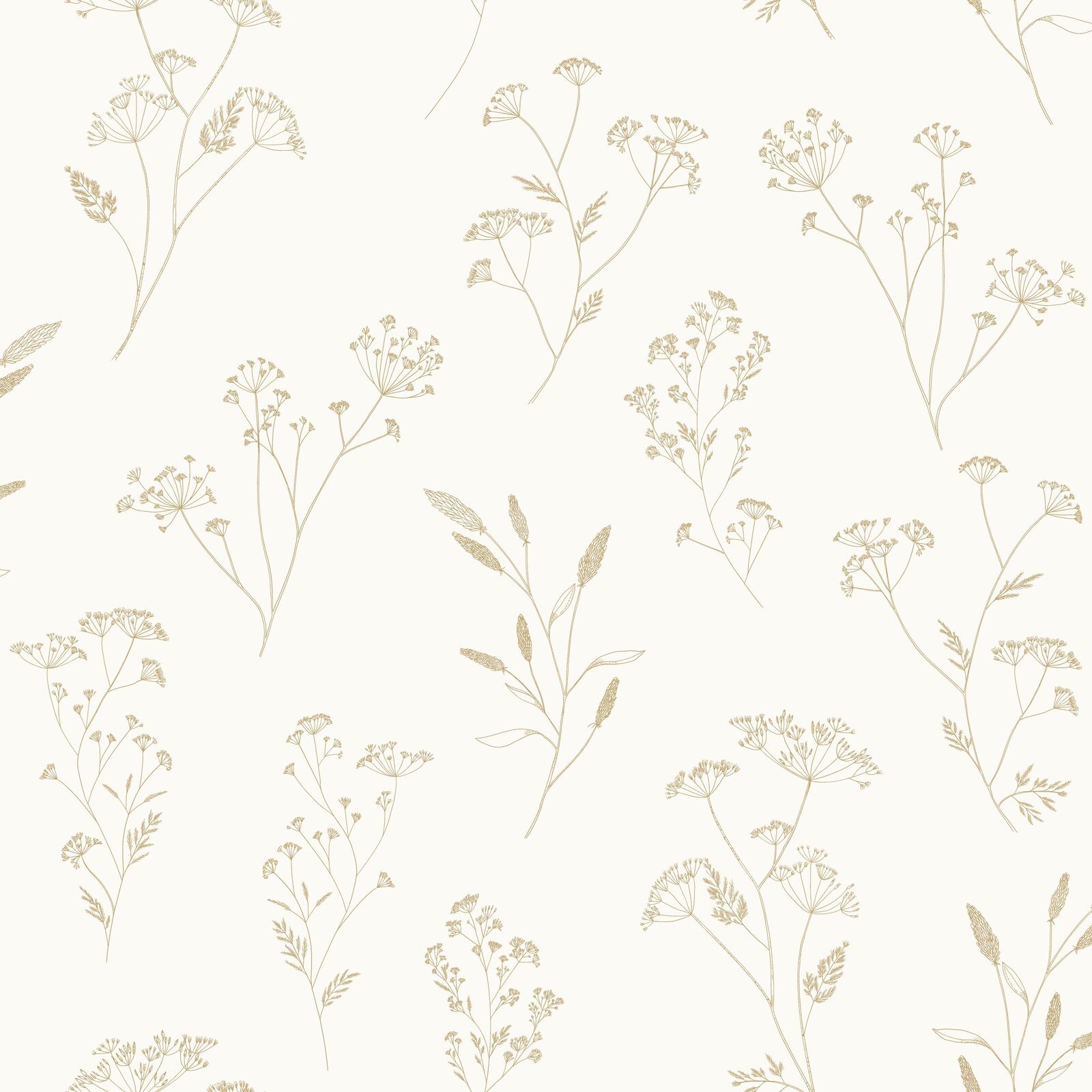 Finesse and elegance are the words invented for this fresh, spring-like « little flowers » pattern, which is perfect for country interiors. You will fall in love with the fine, delicate lines of each plant design, and also with the choice of colours, both in the pencil strokes and on the backgrounds. The White Gold colourway features a cream coloured base with thin floral motifs in a subtle metallic gold shade.
