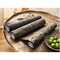 A washed black base with metallic leaf details in a rich gold/copper and shimmery black tone.
