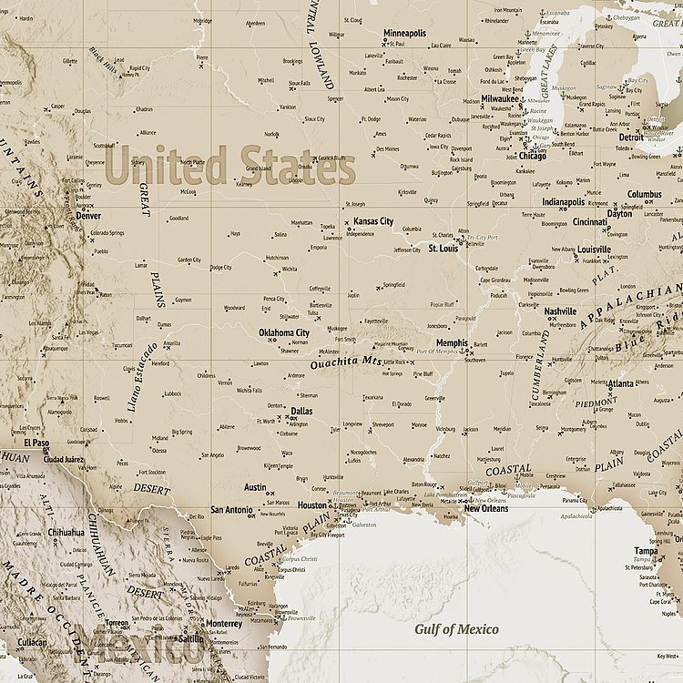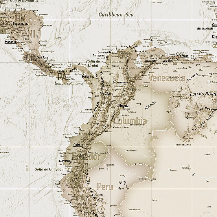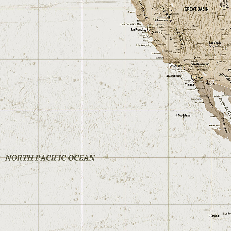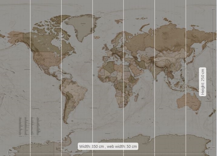 Mural | Earth Map - Sepia Tones 350cm wide x 250cm high
