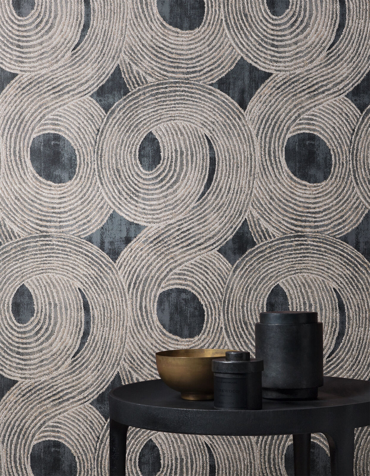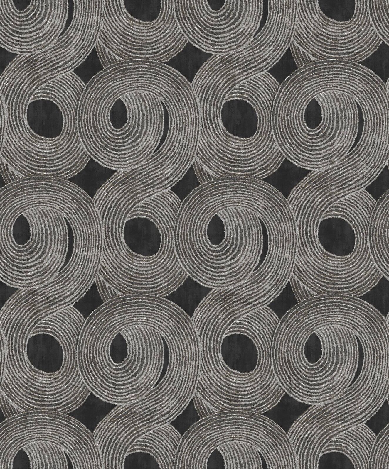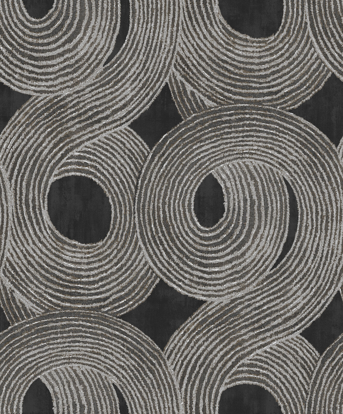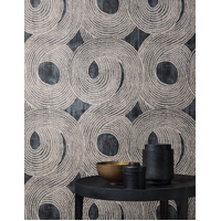 A contemporary design inspired by traditional tribal markings. Large brushstrokes swirl together with a slight texture creating dimension and depth. The Night colourway features a washed charcoal base with swirl details in a rich metallic silver and grey shades.