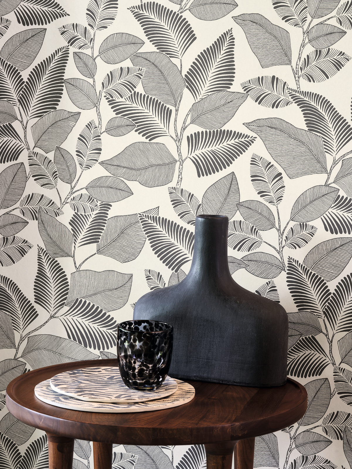 Leafy canopy. This tourist region in the state of Rio de Janeiro is famous for the beauty of its architecture and natural surroundings. Paraty is home to the tangled vines and lushness of the equatorial rainforest. The Charcoal Black colourway features a creamy white base with soft charcoal details over top.