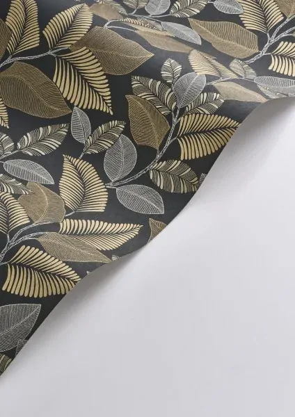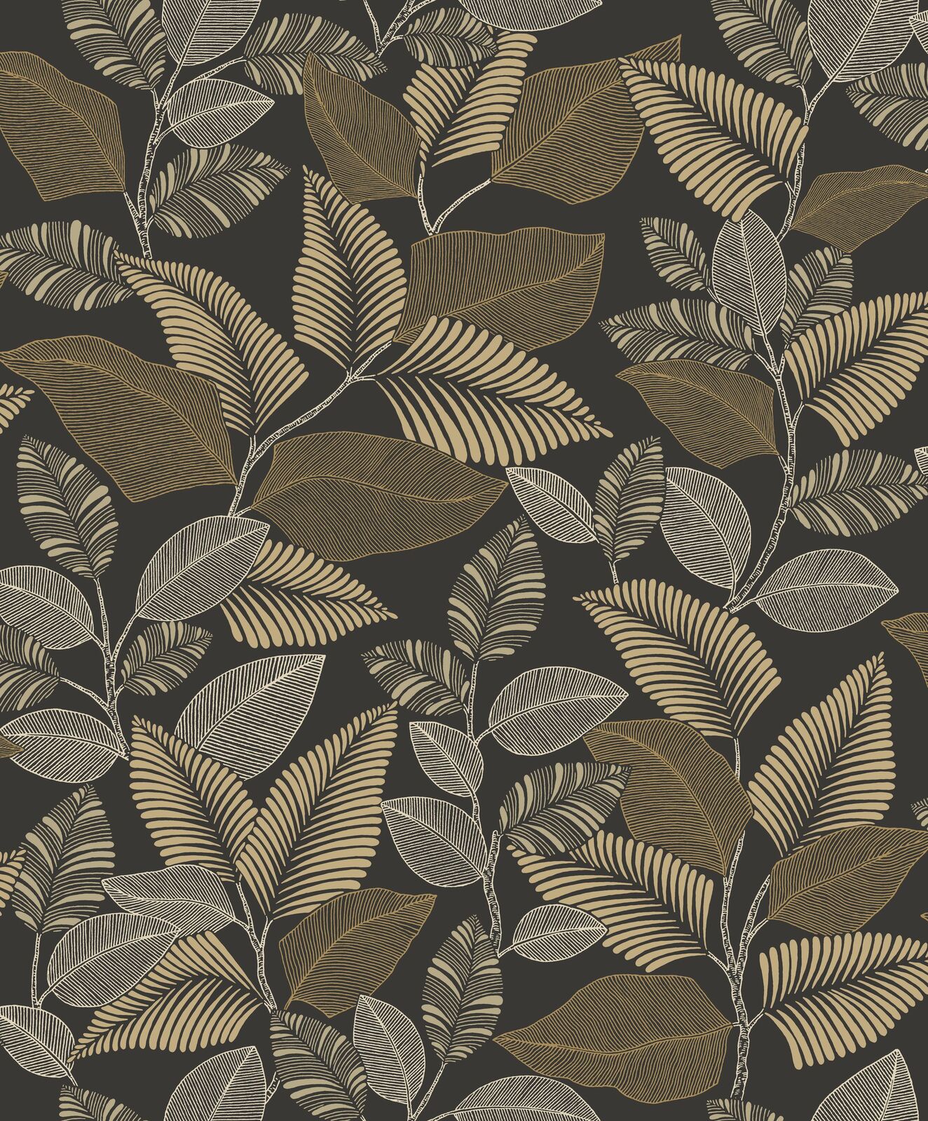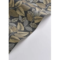 Leafy canopy. This tourist region in the state of Rio de Janeiro is famous for the beauty of its architecture and natural surroundings. Paraty is home to the tangled vines and lushness of the equatorial rainforest. The Taupe colourway features a charcoal black base with soft silver and gold leafy details over top.