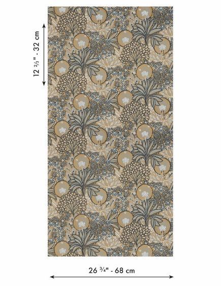 PERSÉE takes us into a tale from The Thousand and One Nights, in the heart of an amazing oasis. On a textured paper, an opulent design of oriental vegetation, magnified by the dusk light. The contours are highlighted with a matte sandy ink, whilst certain details are embellished with a metallic ink.
